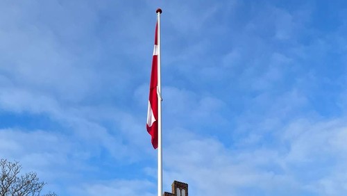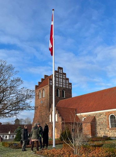 Mona hejste flaget for første gang, og flag vil nu veje smukt til gudstjenester, bryllupper og begravelser.