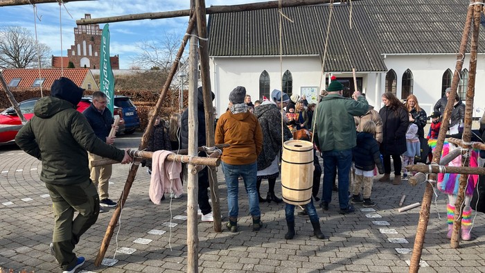Bagefter står KFUM-spejderne for tøndeslagning uden for sognegården, og til sidst er der kakao, kaffe og te og fastelavnsboller i sognegården.