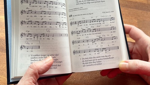 Vi synger fra Højskolesangbogen, hvor vi vælger på skift hvad vi skal synge. Vores dygtige organist spiller til.
