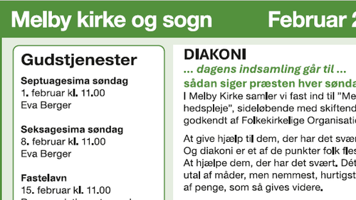 Melby kirkes annonce i Halsnæs avis, med information om hvad der sker i Melby kirke, klik her for at læse