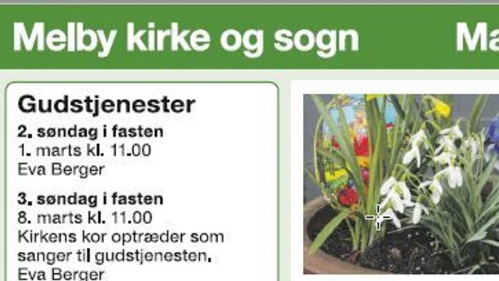 Melby kirkes annonce i Halsnæs avis, med information om hvad der sker i Melby kirke, klik her for at læse